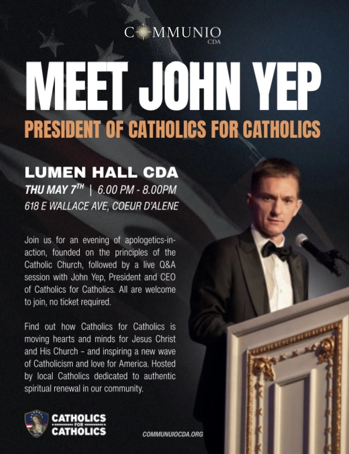 I learned that John Yep, Founder & CEO of Catholics for Catholics was going to be in town I thought it would be a unique opportunity to hear from a national Catholic voice defending Catholicism in the public square that reflects Church teachings.